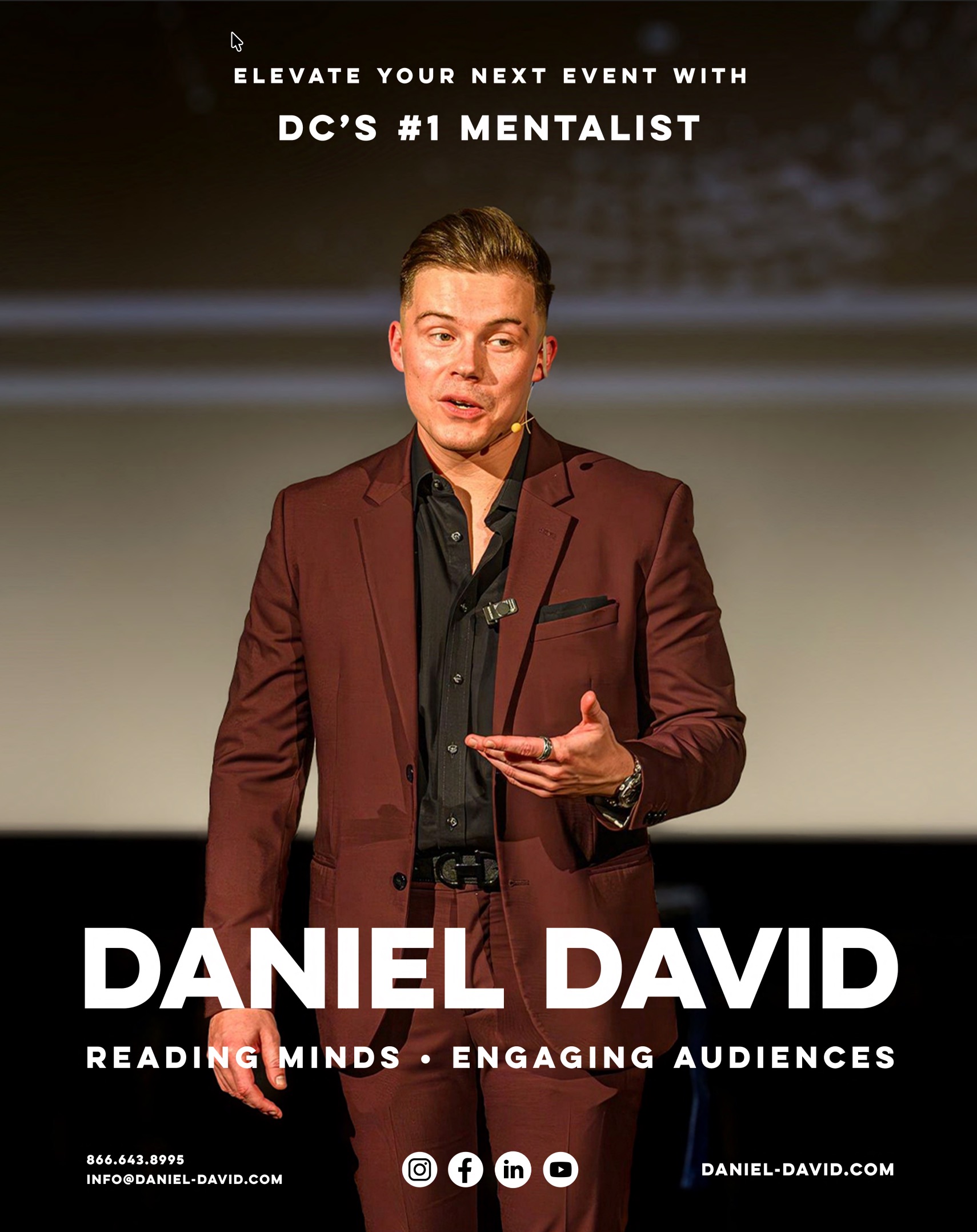 Daniel David’s stage show ‘Mind Over Magic’ delivers a powerful blend of corporate entertainment, interactive mind reading, and psychological illusions—crafted specifically for professional audiences. Designed for awards dinners, annual meetings, and large-scale corporate events, the show keeps guests fully engaged without ever putting anyone on the spot. Every routine is high-impact, polished, and tailored to reflect your company’s message, culture, or theme. With over a decade of experience performing for brands like Coca-Cola, Harley Davidson, and Capital One, Daniel knows how to connect with any crowd. If you’re looking to elevate your next event with smart, unforgettable entertainment, this is the show.